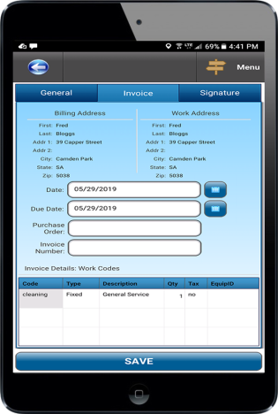 You can create an invoice for a customer at any time. Also, invoices are automatically generated when jobs are marked complete. They can be marked complete directly via a user of the software, or via SM-Mobile, the mobile app – employees enter all relevant job details while at the customer’s location. This ensures greater accuracy and saves time for administrative staff at the head office.